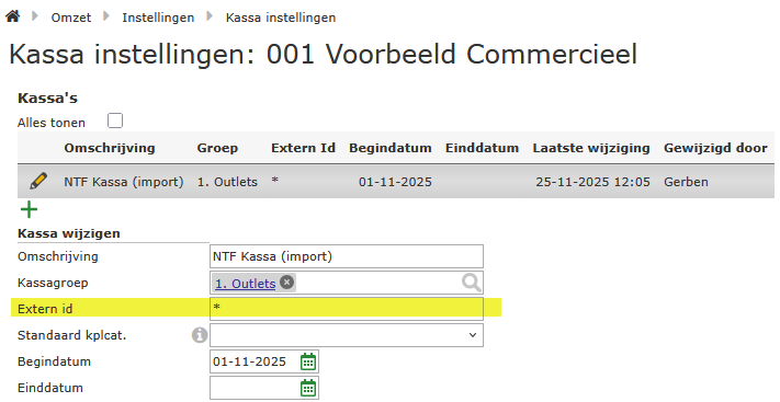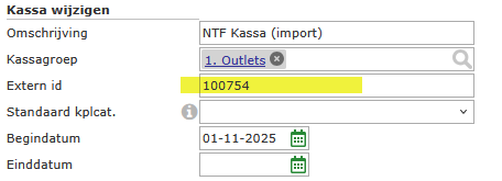 Nu je de ID’s van de Stores weet, kun je het invullen in het veld Extern id van de respectieve kassa.