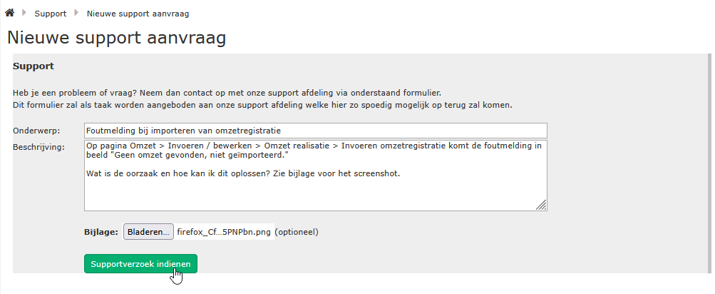 - Om je sneller te helpen ontvangen we graag een screenshot van jouw scherm waarop het probleem te zien is. Voeg dit toe als bijlage.