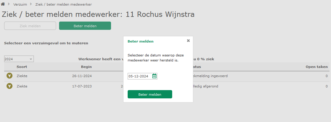 Aangepast is de gebruikers interface voor het betermelden van een verzuimgeval.