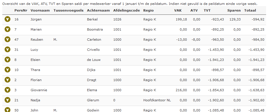 Nieuw toegevoegd aan de Rapportenbibliotheek is Saldi overzicht VAK, ATV, TVT en Sparen per medewerker. Dit rapport kun je toevoegen aan Mijn rapporten en wekelijks (volledig geautomatiseerd) in je mailbox laten droppen. Handig!