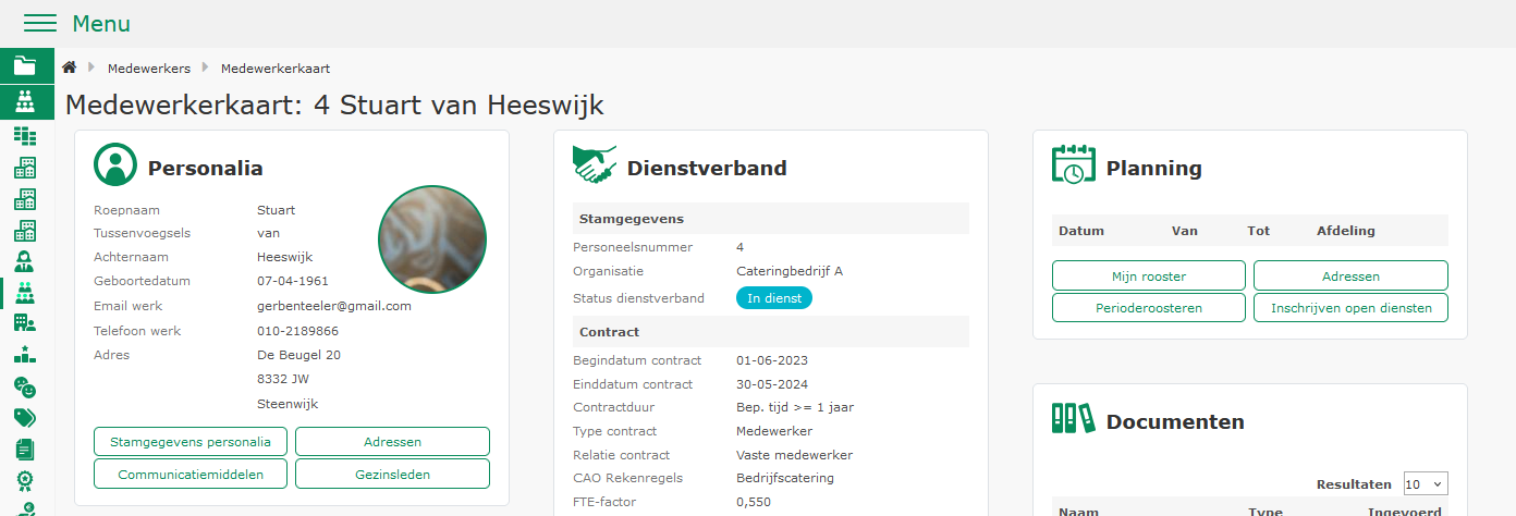 • Medewerker overzicht -> Medewerkerkaart